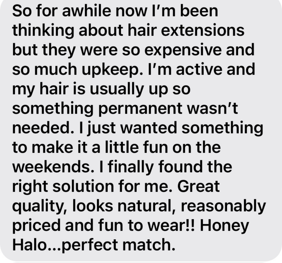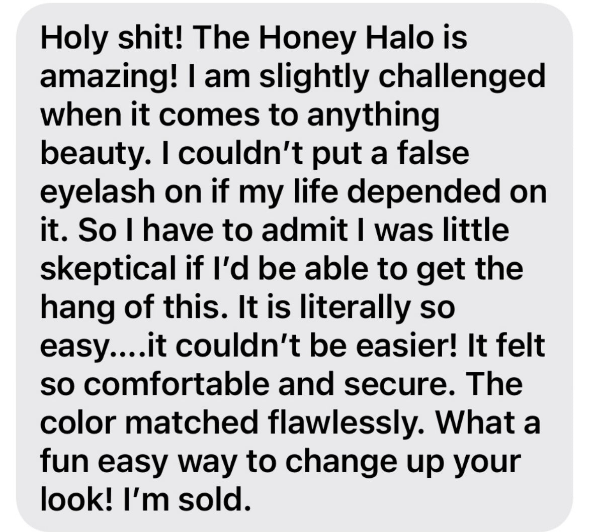 Honey Halo makes this look fuller, softer, & way more eye catching.